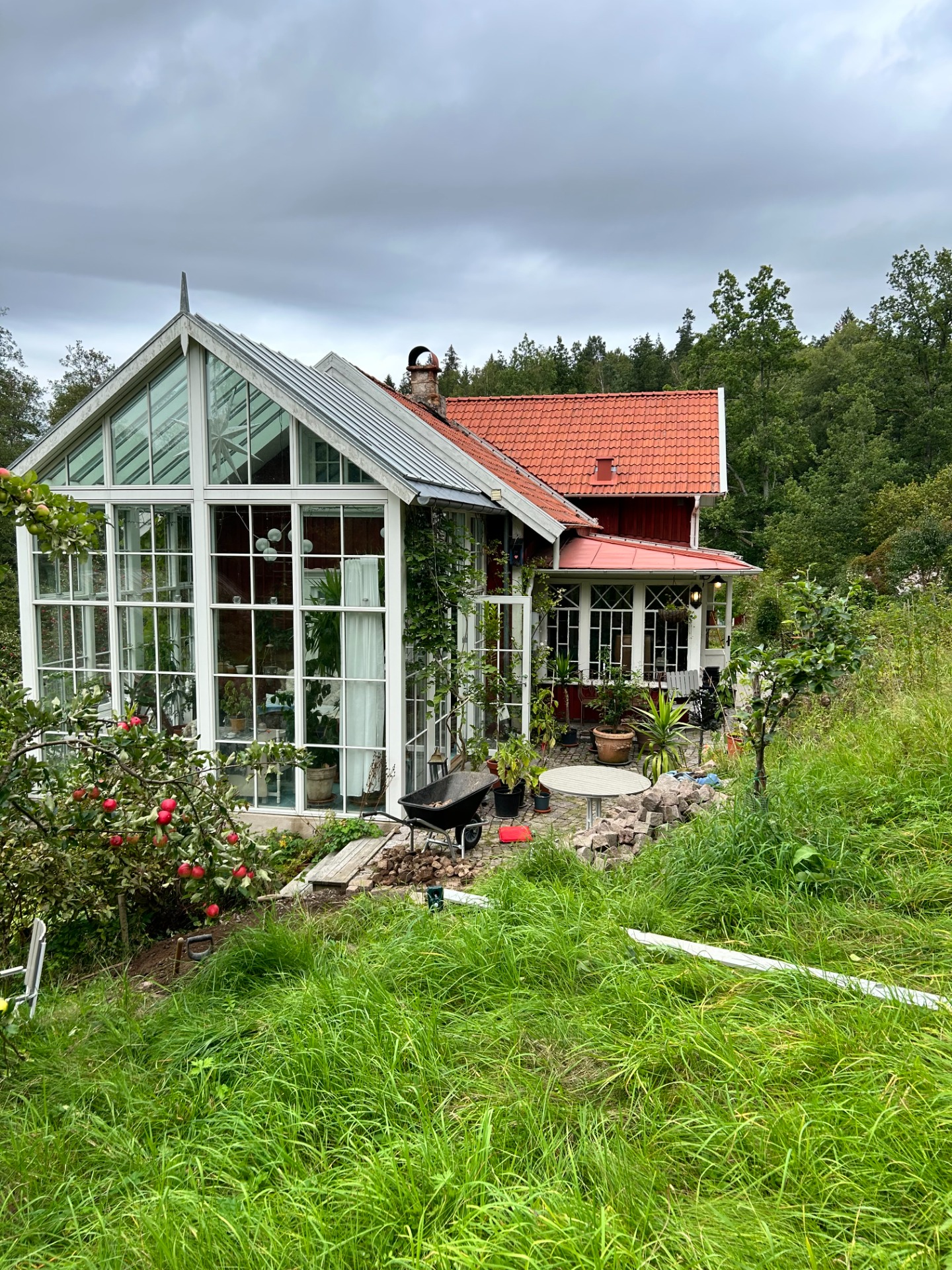 Ni kan parkera vid ladan, gå upp längs gången runda huset på vänster sida så finns en egen ingång till orangeriet som är min mottagning.